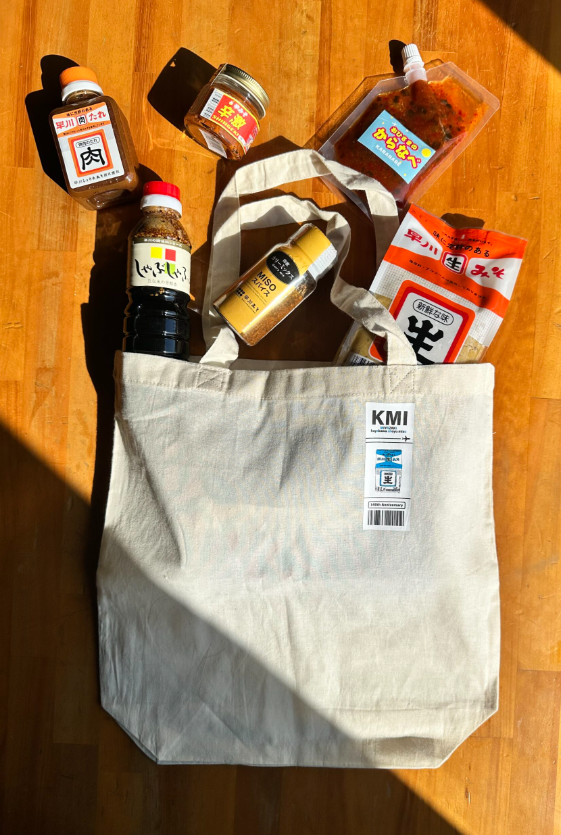 このエコバッグは、当社の代表商品「麦味噌1kgガゼット」を現代アート風にデザインし、飛行機の荷物タグをパロディ化。「宮崎から旅立つ味噌」という想いを込めた遊び心あふれる仕上がりです。